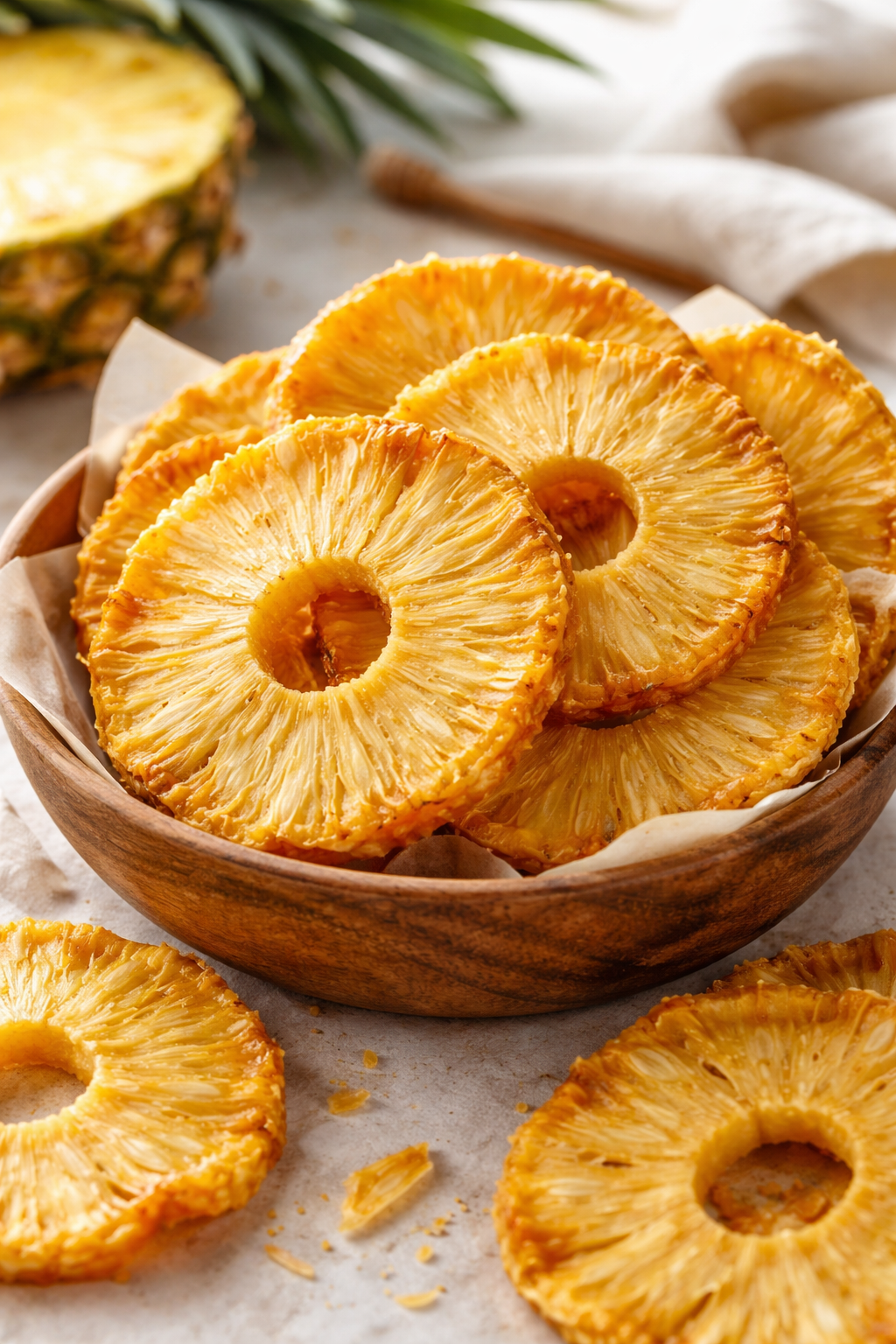 A dehidratált ananász egy természetesen édes, trópusi gyümölcssnack, amely megőrzi a friss ananász intenzív ízét és aromáját, miközben hosszan eltartható, praktikus formában élvezhető. A kíméletes szárítási eljárás során a gyümölcs megőrzi értékes tápanyagainak jelentős részét, így ideális választás egészségtudatos nassoláshoz.